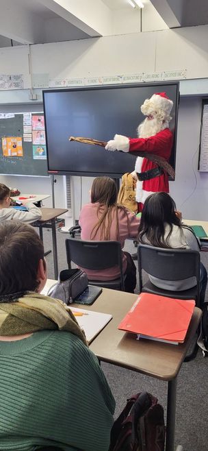 Die Schülerinnen und Schüler der Mittelschule machten große Augen, als es am 05.12. an ihren Klassenzimmertüren klopfte und der Nikolaus vor ihnen stand. Viele tolle Dinge wusste er über die Kinder zu berichten, aber auch das ein oder andere mahnende Wort fiel. Natürlich wollte der Nikolaus auch einen Bericht über die Lehrer der Klasse haben. Der ein oder andere Lehrer musste Besserung geloben. Seine Rute hatte der Nikolaus auch dabei – ob diese wohl zum Einsatz kam? Zum Abschluss wurden alle mit einem Schokoladennikolaus belohnt. Vielen Dank von der ganzen Max-Balles- Mittelschule an unseren engagierten Elternbeirat!